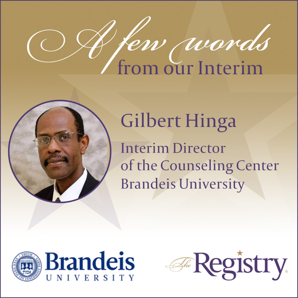 After a 20 plus-year career in Higher Education in the area of Student Affairs, Gilbert Hinga joined The Registry so he could expand his national impact in the work that he loves so much. Gilbert’s first assignment for The Registry is as Interim Director of the Counseling Center at Brandeis University in Boston, MA, a medium sized, private research university with global reach.