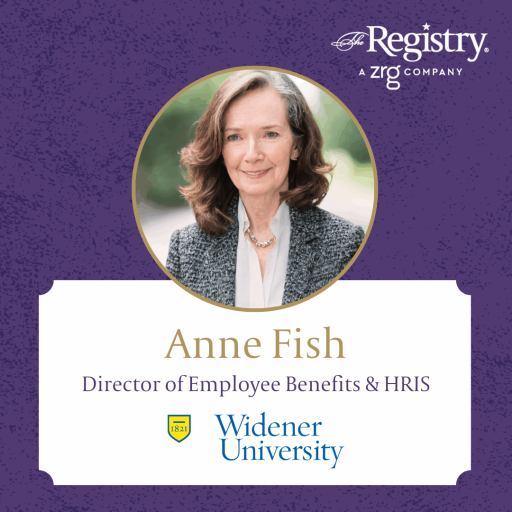 Best of luck to Registry Member Anne Fish as she begins her new placement as Interim Director of Employee Benefits & HRIS at Widener University. We are delighted to have paired her exceptional skills and experience with the needs of Widener University, and we are confident that she will excel in her new role.