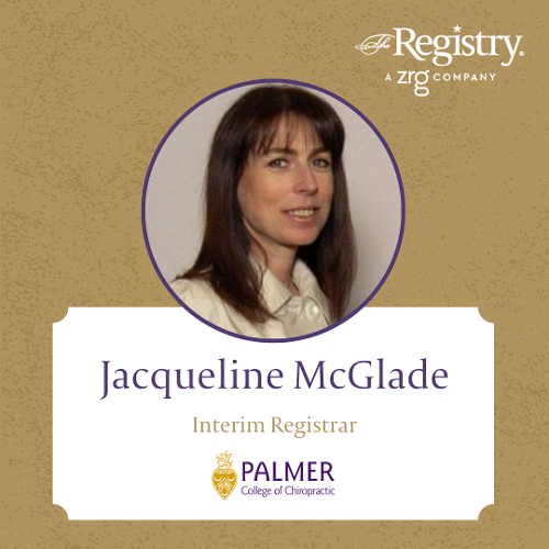 Best of luck to Registry Member Jacqueline McGlade as she steps into her role as Interim Registrar at Palmer College of Chiropractic. Her enthusiasm, dedication, and experience will certainly drive success in the department.