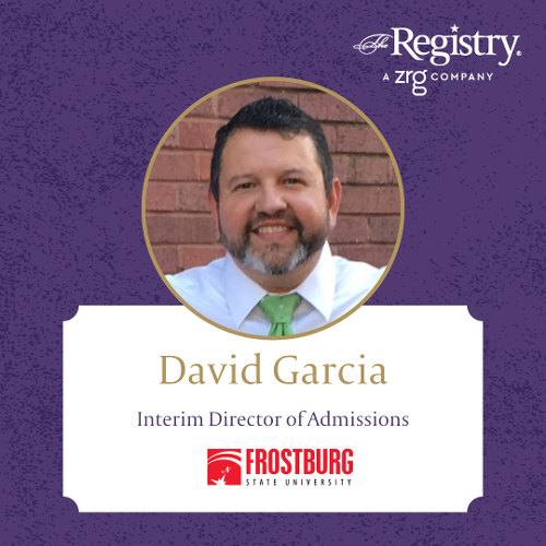 Congratulations to Registry Member David Garcia for his placement as Interim Director of Admissions at Frostburg State University. In this role, David will oversee the admissions department, manage staff, refine strategies and policies, analyze admissions data, lead recruitment efforts, collaborate with other departments, and engage with prospective students and their families. We wish him all the best!