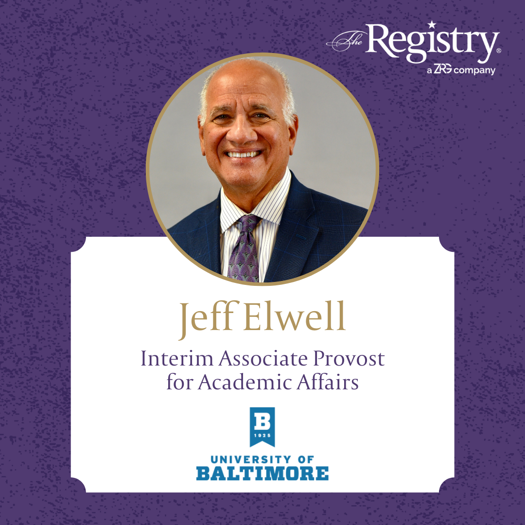 Congratulations to Registry Member Jeff Elwell on his recent placement at the University of Baltimore as Interim Associate Provost for Academic Affairs. Best of luck!