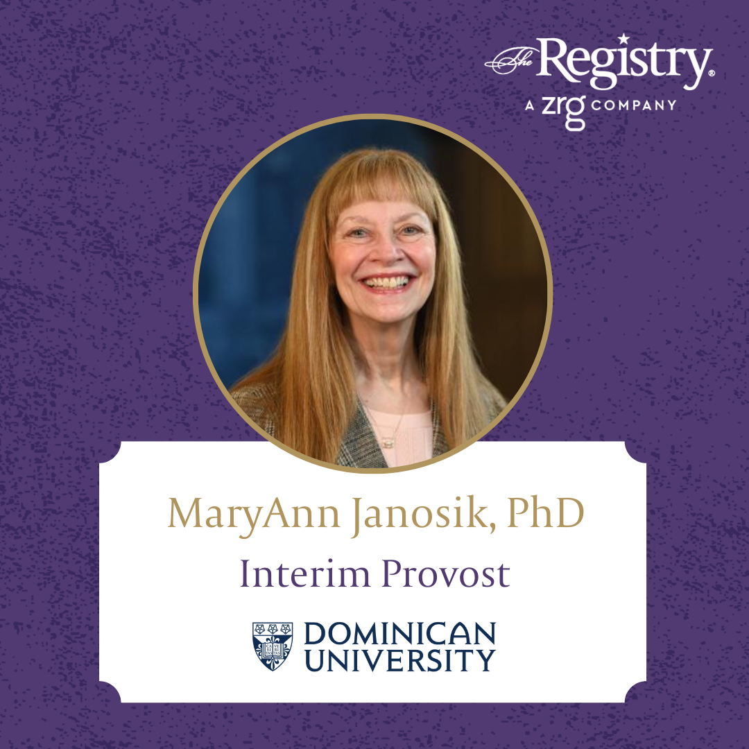 Congratulations to Registry Member MaryAnn Janosik, PhD. for her achievements as Interim Provost at Dominican University. We wish you continued success!