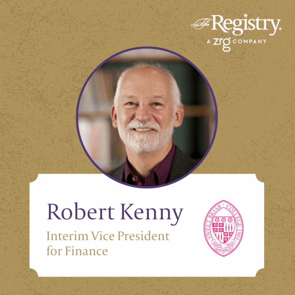 Congratulations to Registry Member Robert Kenny for recently starting his role as Interim Vice President at Sweet Briar College. Robert will be a key member of the Finance Department and oversee financial management, strategic planning, reporting and analysis, and more during this time of transition. We look forward to seeing the great work that he will accomplish!