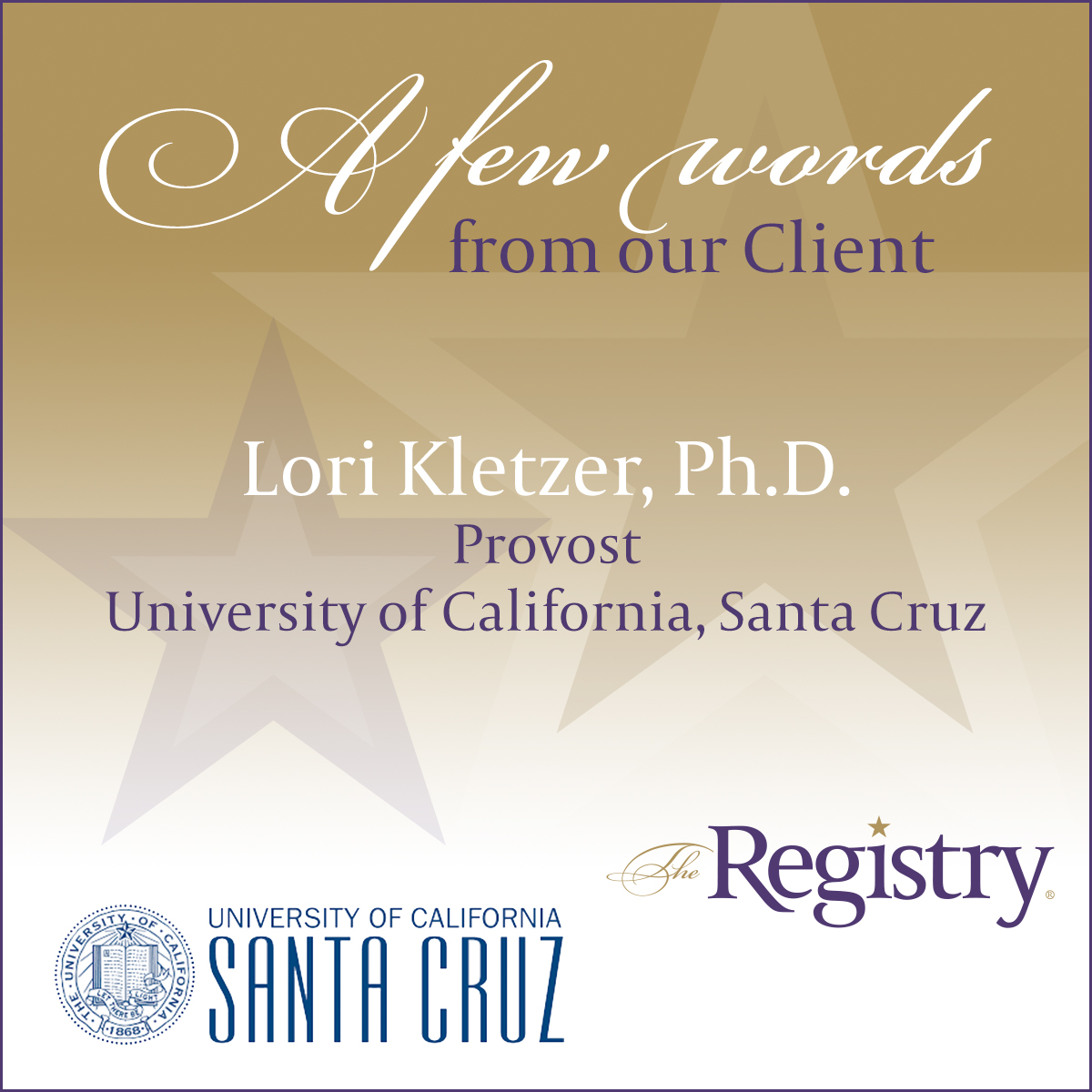 Many thanks to University of California, Santa Cruz Provost Lori Kletzer, Ph.D. for this stunning testimonial outlining her experience working with our company. We look forward to continuing to partner with Lori and her amazing team!