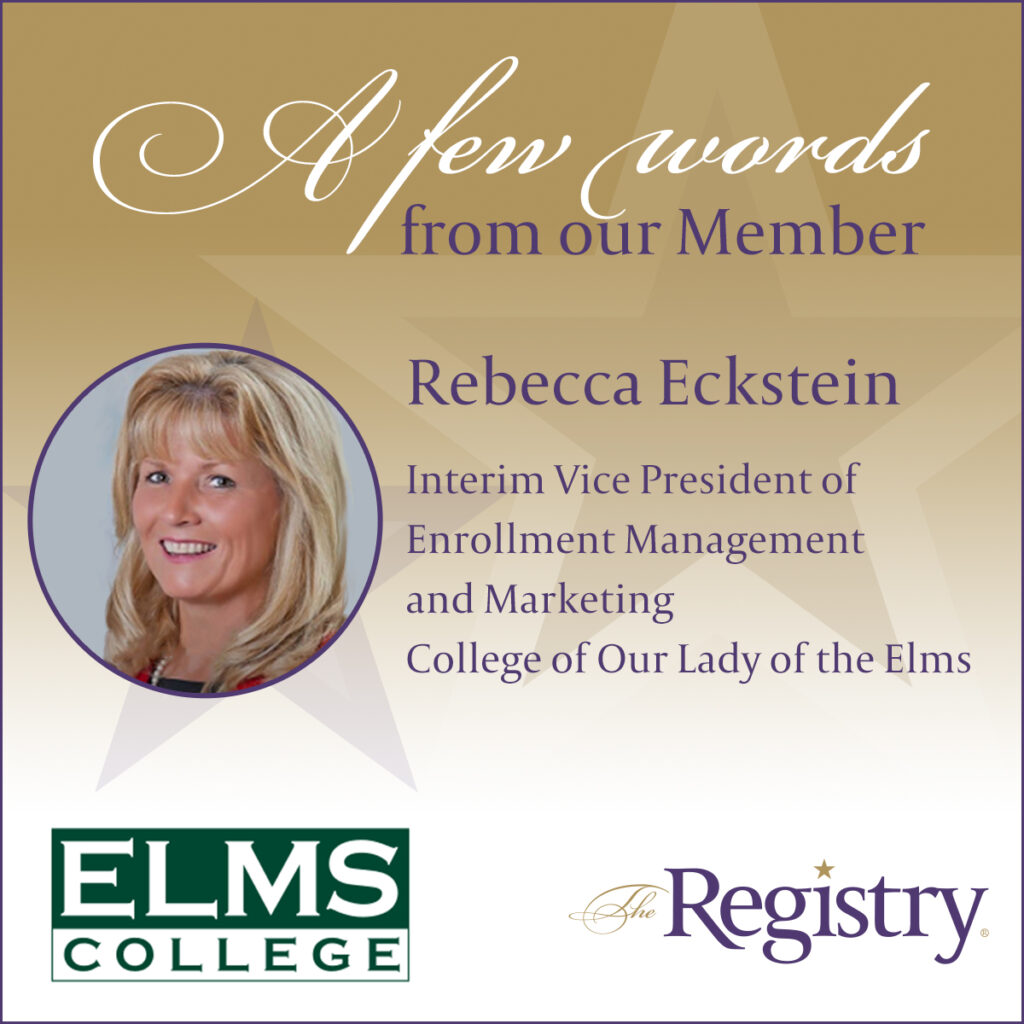 Thank you to Member Rebecca Eckstein for sharing her experience working with The Registry. It’s an honor to have supported her in her journey to become Interim Vice President of Enrollment Management and Marketing at the College of Our Lady of the Elms.