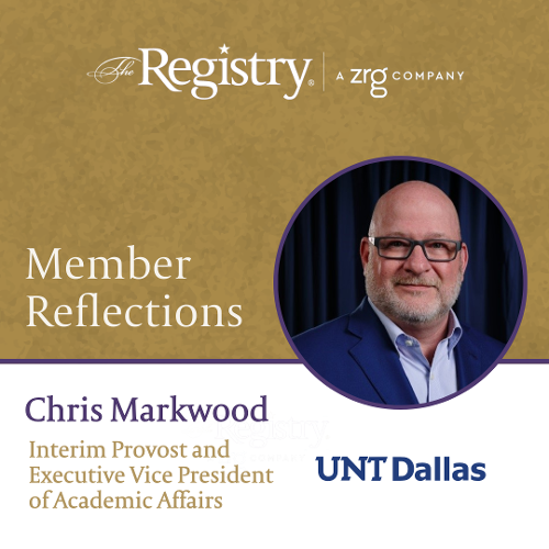 Thank you to Registry Member Chris Markwood for reflecting on your role as Interim Provost and Executive Vice President of Academic Affairs at UNT Dallas. We look forward to celebrating all of your accomplishments as you enter another academic year!