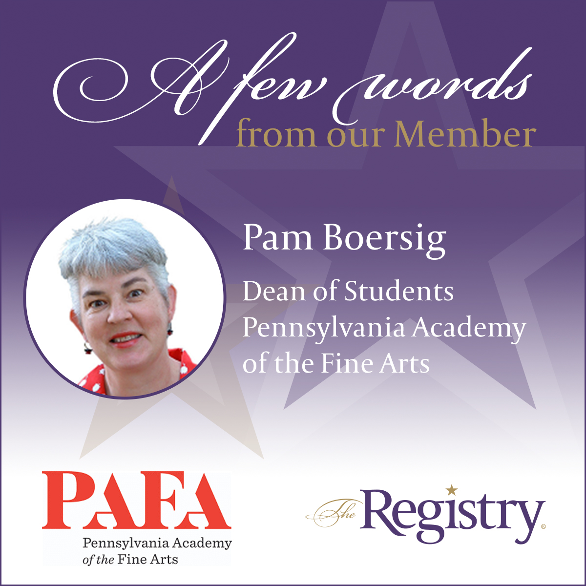 Our process to place Registry Members into interim roles is not only unique, but effective. Thank you to Registry Member Pam Boersig, Interim Dean of Students at the Pennsylvania Academy of the Fine Arts, for your take on our model.