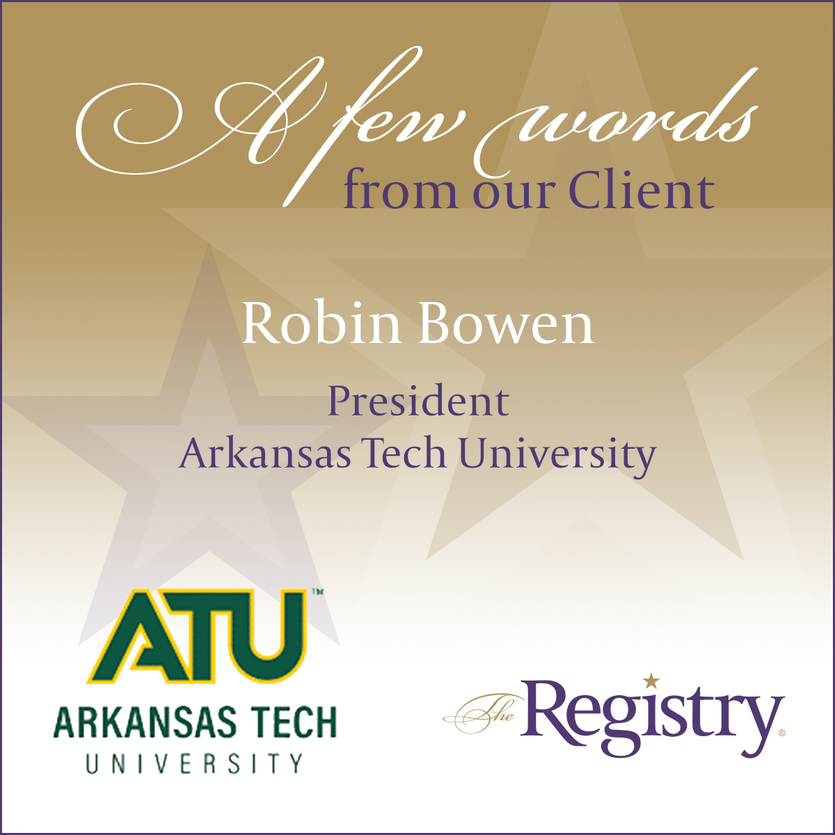There is nothing better than receiving client testimonials like this one from Robin Bowen, President of Arkansas Tech University. We look forward to hearing more about Registry Member Dr. Julie Furst-Bowe and what she helps your team achieve during her placement.