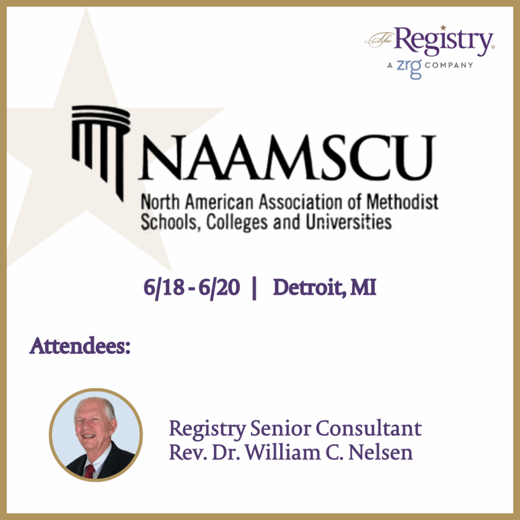 Tomorrow marks the beginning of the North American Association of Methodist Schools, Colleges, and Universities (NAAMSCU) University Senate Meeting. Senior Consultant Rev. Dr. William Nelsen is looking forward to engaging in meaningful conversations about how The Registry supports religious institutions with exceptional interim senior leadership and consulting services.