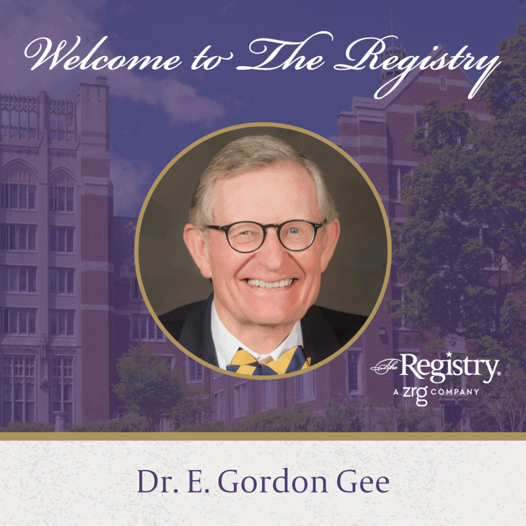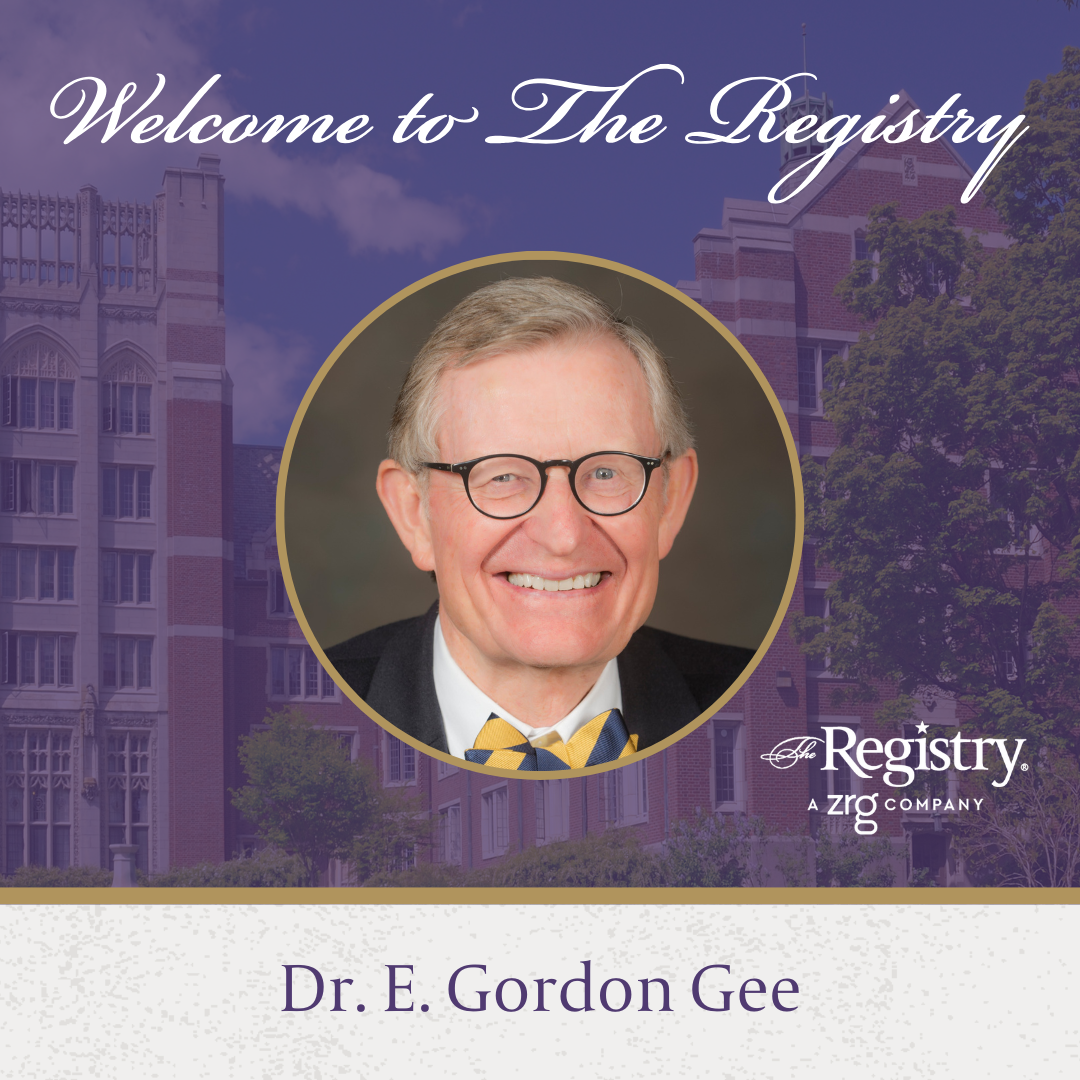 We are delighted to welcome Dr. E. Gordon Gee as a new Member of The Registry. Dr. Gee is one of the most experienced university presidents in the country, having led five major institutions during his career, including West Virginia University, The Ohio State University, Vanderbilt University, Brown University, and the University of Colorado.