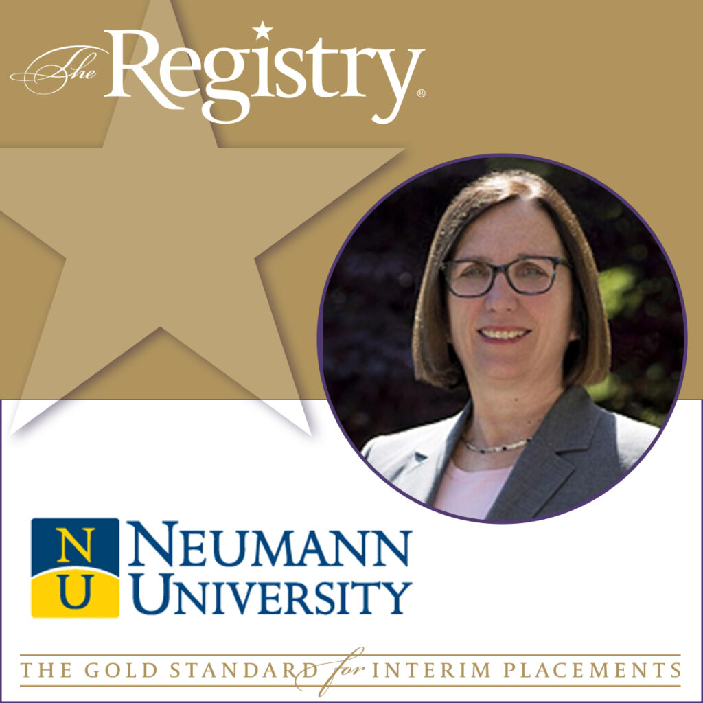 “Joining the team at Neumann University has been transformational as I work with a passionate group of students, faculty staff and administration to preserve the legacy of the Sisters of Saint Francis and uphold the University’s R.I.S.E.S. values and mission. I am fortunate to be creating, with this Franciscan team, a unique Provost model that will positively change lives as Neumann grows—thank you to The Registry for bringing us together.”
