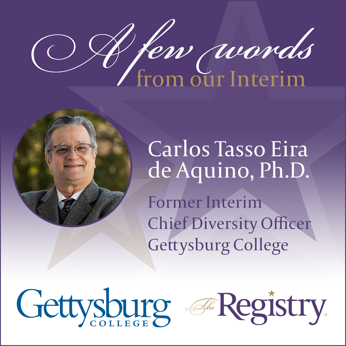 At The Registry, our members have the opportunity to make a difference in the lives of countless students and colleagues. We are humbled by this testimonial from Registry Member Carlos Tasso Eira de Aquino, Ph.D., and are thrilled to have witnessed his amazing work during his placement as Interim Chief Diversity Officer at Gettysburg College.