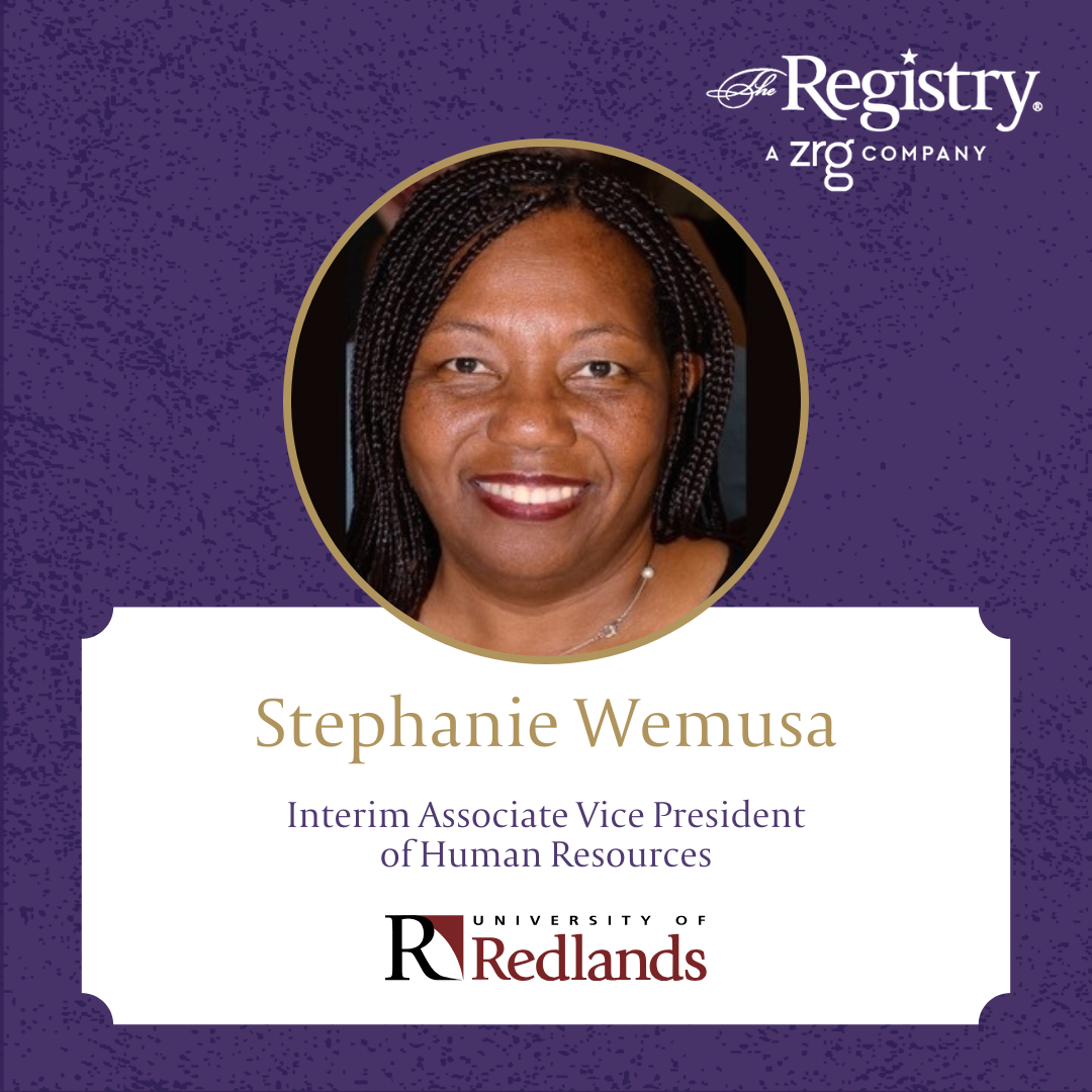 Best of luck to Registry Member Stephanie Wemusa in her role as Interim Associate Vice President of Human Resources at the University of Redlands. Stephanie brings extensive experience as a talent management professional and educator, with a strong ability to translate executive strategy into action. We look forward to celebrating her success in this placement.