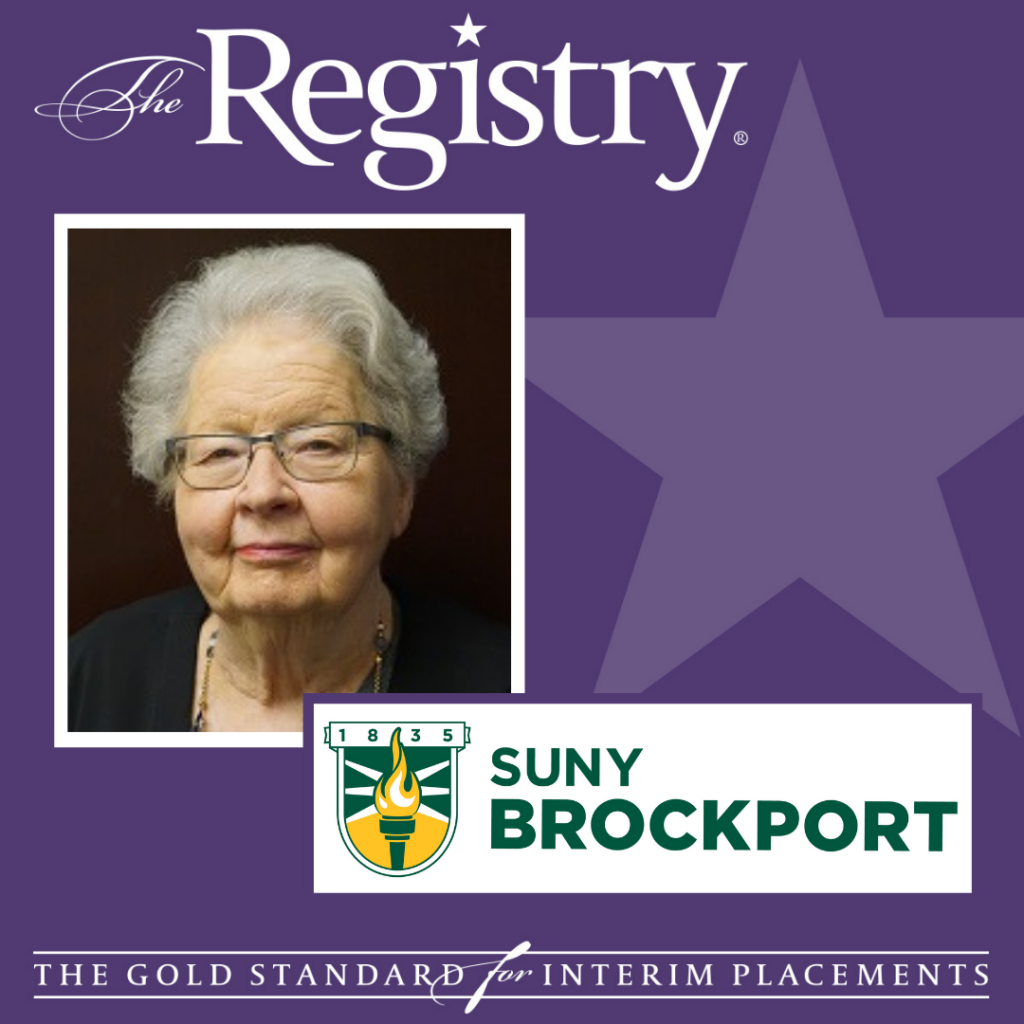 Congratulations to Registry Member Linda Delene on her placement at SUNY Brockport as Interim Provost.