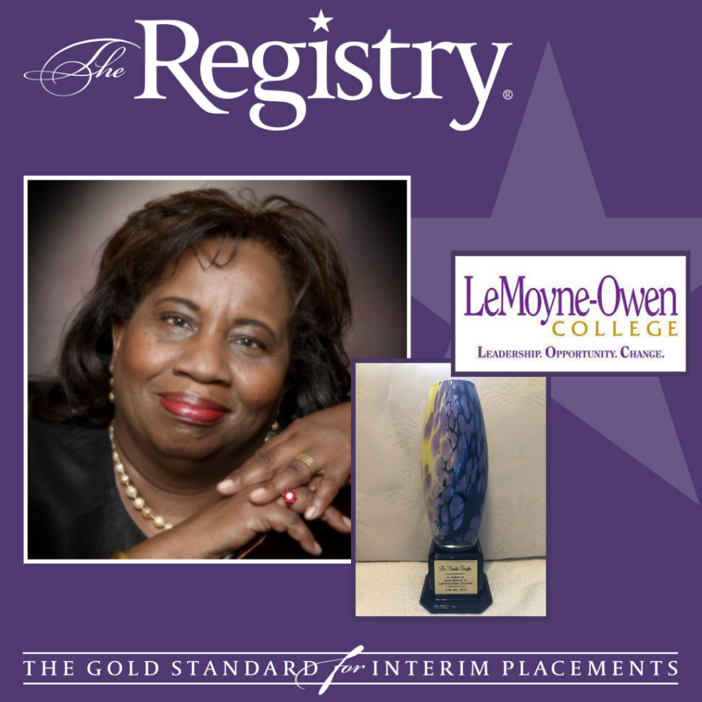Please enjoy Registry Member Sandra Vaughn’s reflection on being placed as Interim Vice President of Academic Affairs at LeMoyne-Owen College through The Registry.