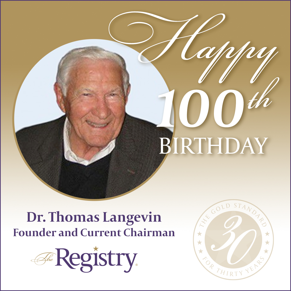 Please join us in wishing Dr. Thomas Langevin a happy 100th birthday! Founder and current Chairman of The Registry, Dr. Langevin began his career in 1951 and has dedicated his life to support the mission of higher education. We thank you for your guiding light.
