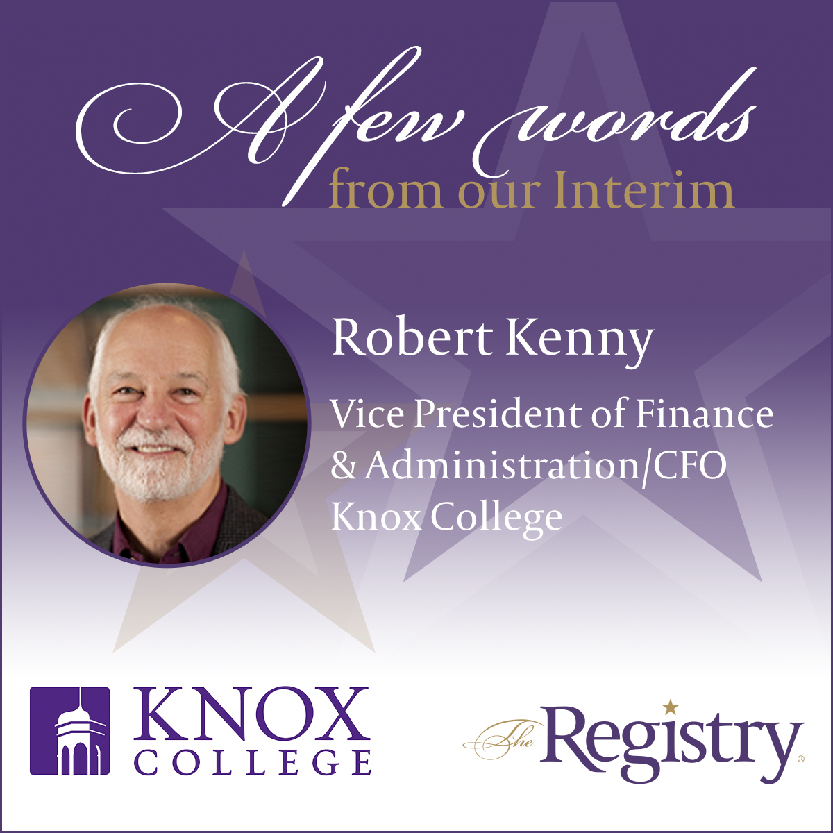 Thank you to Registry Member Robert Kenny for sharing his experience of being placed as Vice President of Finance & Administration/CFO at Knox College.