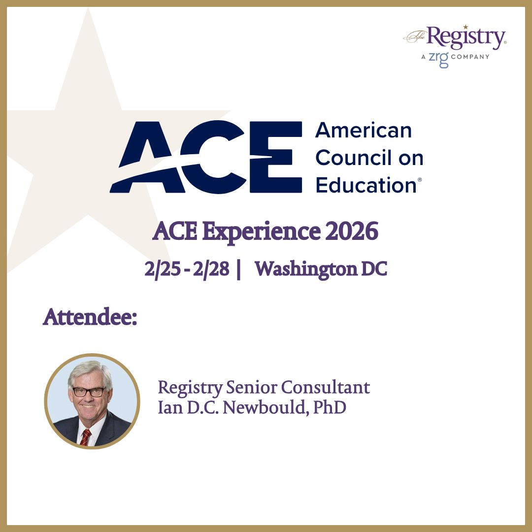 The ACE Experience 2026 begins tomorrow! Registry Senior Consultant Ian D.C. Newbould, PhD, is looking forward to greeting attendees and sharing how The Registry can help your institution navigate times of transition with experienced and diverse interim leaders.