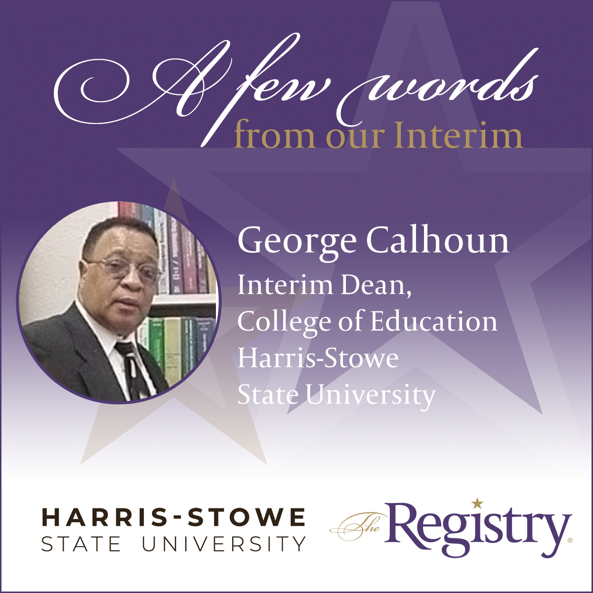 We are grateful to receive these words from Registry Member George Calhoun as he continues his placement as Interim Dean of Education at Harris-Stowe State University. Our team is equipped with the tools to ensure each placement is matched with the perfect college or university based on their previous experience.