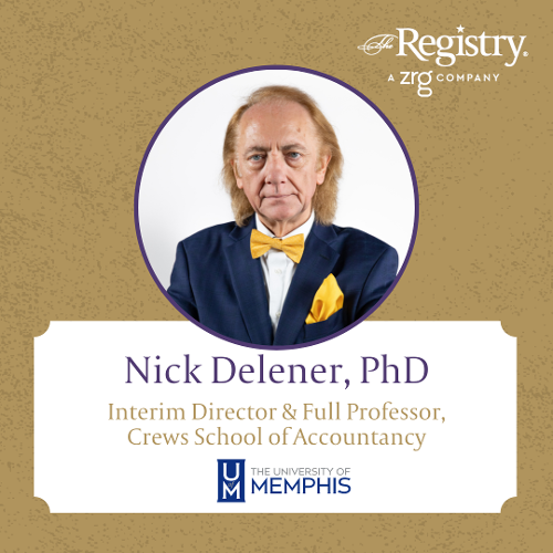 Congratulations to Registry Member Nick Delener, PhD, for his recent placement as Interim Director & Full Professor of the Crews School of Accountancy at The University of Memphis. We wish him the best of luck and are excited to see the great things that he will accomplish.