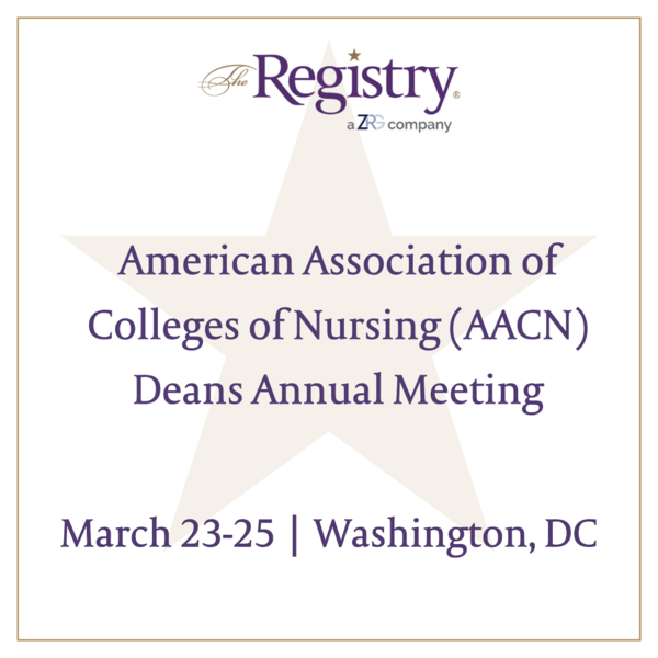 The Registry will be attending the American Association of Colleges of Nursing (AACN) Deans Annual Meeting. The event focuses on important issues, emerging trends, and strategic priorities that affect nursing education.